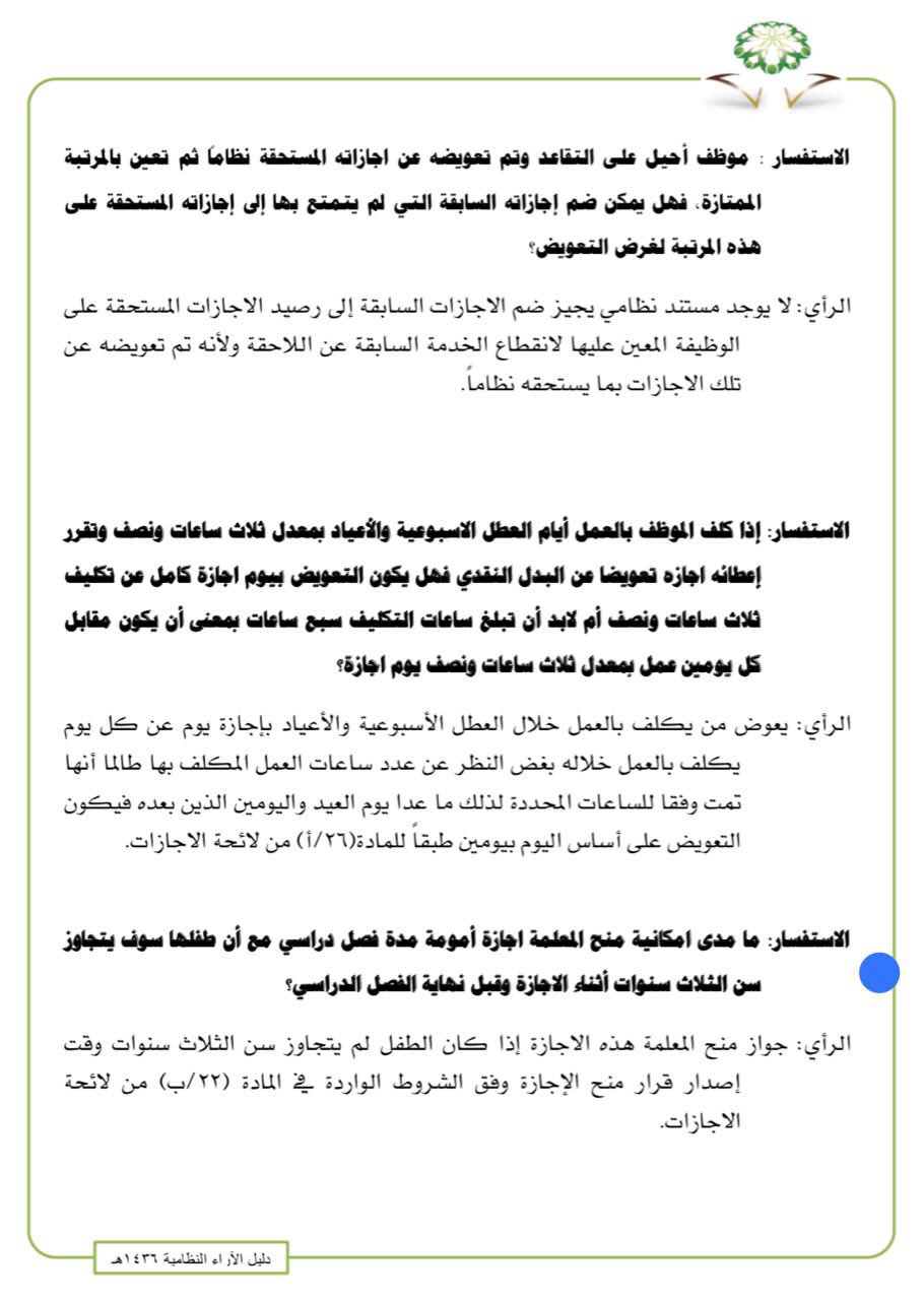 النبأ 7 ضوابط ت حدد المقابل النقدي لـ رصيد الإجازات الاعتيادية الخاصة بالموظفين